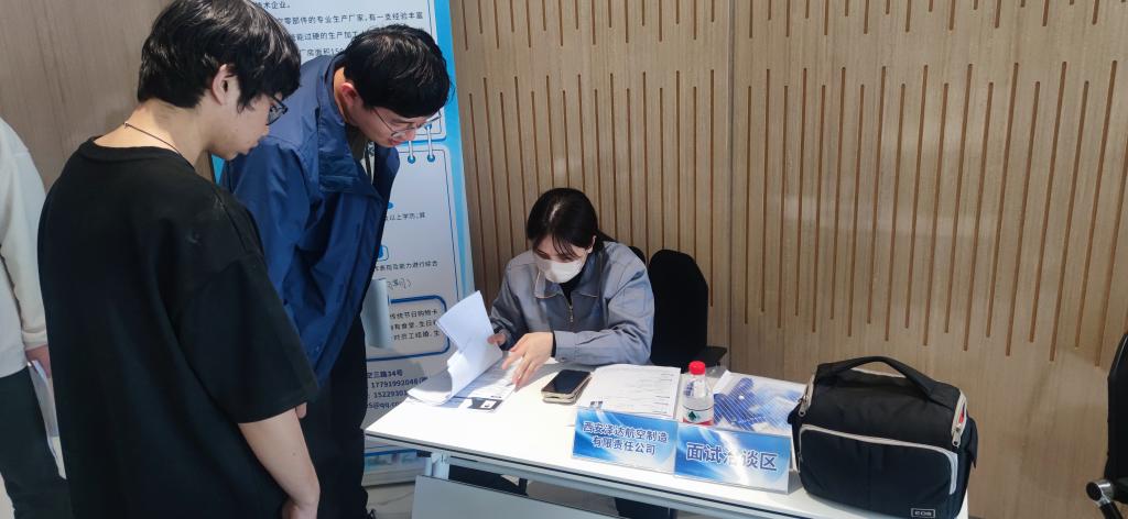 参观结束后,人才服务中心组织师生在西安泽达航空制造有限责任公司召开重点企业招聘宣讲会。西安卓锐航空科技有限公司、西安兴航航空科技股份有限公司、西安超码科技有限公司、西安泽达航空制造有限责任公司4家招聘企业依次进行宣讲。各企业结合当前就业形势,详细介绍了各自公司的基本情况、公司环境、优势及核心竞争力以及招聘岗位和岗位具体要求,并向求职者分析了近几年航空行业的需求变化及公司的发展前景、生产产品、福利待遇等。宣讲会还精心提供了《中国航空城人才需求目录》,汇集了近百家辖区企业的用人需求。活动现场气氛热烈,求职者积极提问,与企业代表进行了深入沟通。宣讲结束后,毕业生们纷纷投递简历,开展面试洽谈。据统计,截至活动结束共收到简历205份,面试人数108人,初步达成就业意向44人。