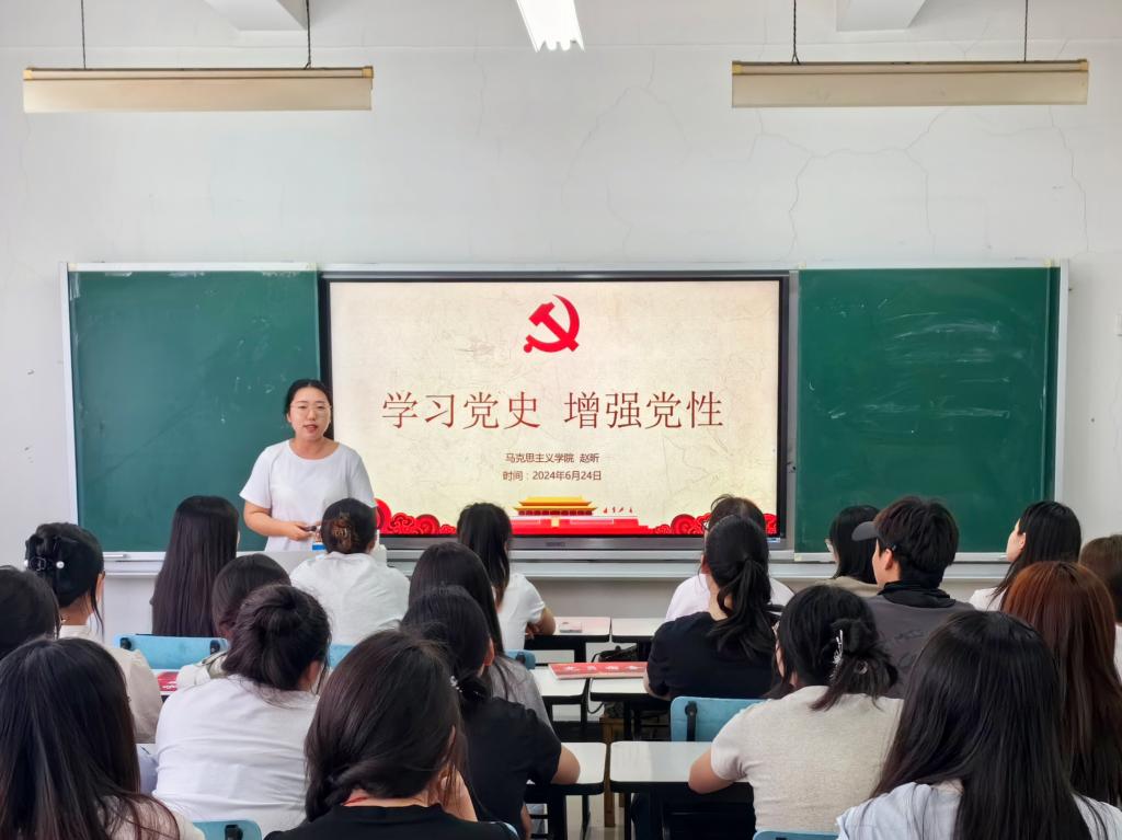 马克思主义学院赵昕老师为毕业生党员上在校期间“最后一课”。她从“中国共产党的百年辉煌历程”“百年党史的宝贵经验”“学好百年党史争做时代新人”三个方面,与广大毕业生党员一起回顾中国共产党波澜壮阔的百年历史,总结百年党史的宝贵经验,就广大毕业生党员如何学习党史、做时代新人提出了希望和要求。结合党纪学习教育,她希望毕业生党员保持廉洁品质,自觉遵守党的纪律和规矩,以身作则,率先垂范,为营造“学纪、知纪、明纪、守纪”的浓厚氛围做贡献。