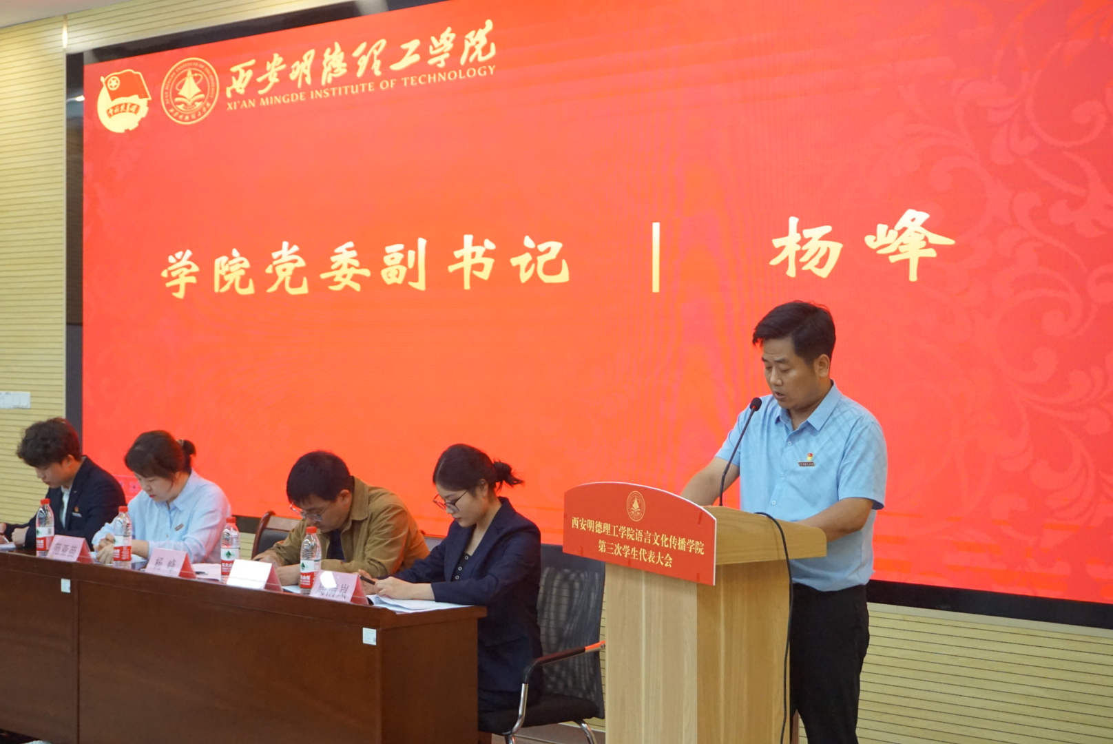 9月27日,语言文化传播学院第三次学生代表大会在建德楼201报告厅顺利召开。学校团委副书记刘雄、学院党委副书记杨峰、团委书记周清岚、学院办公室主任范亚苗、信息工程学院团委书记王佳龙、经济与管理学院团委书记卢保全、智能制造与控制技术学院张兴、校学生会主席团代表薛东浩、学院全体辅导员以及全体学生代表出席本次会议。本次大会由语言文化传播学院学生闫可可主持。