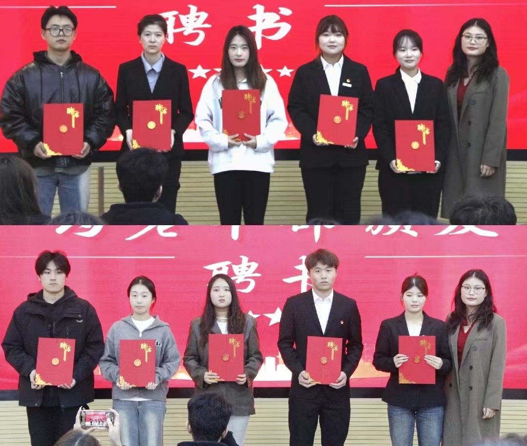 首先,周清岚对各位新成员的加入表示热烈的欢迎,她提出团委、学生会成员们要做到全心全意为同学们服务,成为学院与学生之间沟通的桥梁和纽带,同时她向一年来为我院团学工作辛勤付出的学生骨干们表示衷心的感谢,并颁发聘书。