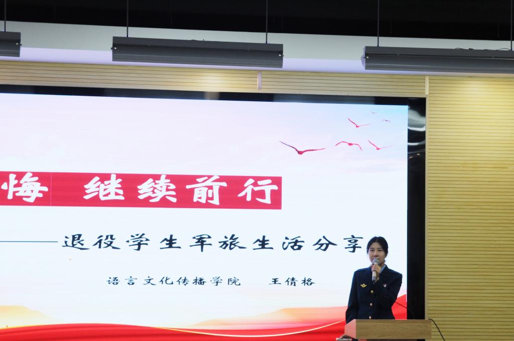 为落实立德树人根本任务,深化国防教育实践,充分发挥退伍大学生朋辈引领作用,增强学生国防意识和激发参军报国热情,12月5日晚语言文化传播学院举行退役大学生军旅生涯分享暨征兵宣传会。本次宣传会由22级学生刘千屹主持,学院4名优秀退役学生应邀参与分享。学校征兵工作站卓西洁,语言文化传播学院辅导员黄雪琪,以及学院2023级、2024级200余名学生参加了此次宣传会。