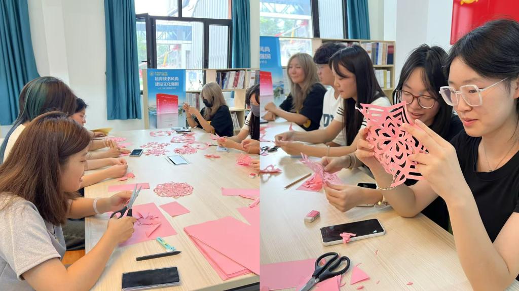 为探索构建“三全育人”“五育并举”融合的发展型资助育人体系,6月20日下午,语言文化传播学院将非遗剪纸艺术与资助育人深度结合,在“一站式社区”桐苑党团活动中心开展第二届“妙手生花,纸剪温情”活动。学院资助专干谭辉、辅导员周清岚及受助学生代表参与其中。