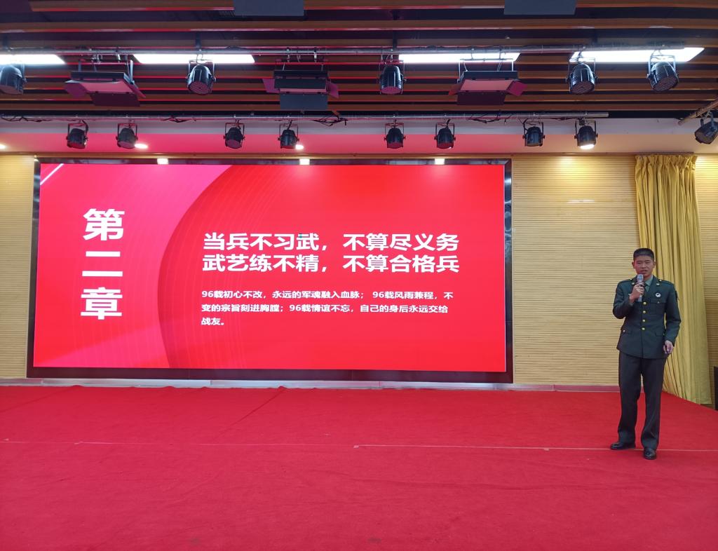 谢宇轩同学向我们分享了他在军旅生涯中的成长经历。在服役期间,他积极克服不足,努力提高自身本领,最终成长为一名“四有优秀士兵”。他说“军人的代名词就是‘纪律’‘责任’与‘担当’,两年的部队生活,让我明白什么叫纪律,什么是责任,如何去担当,这些让我不再迷茫”。
