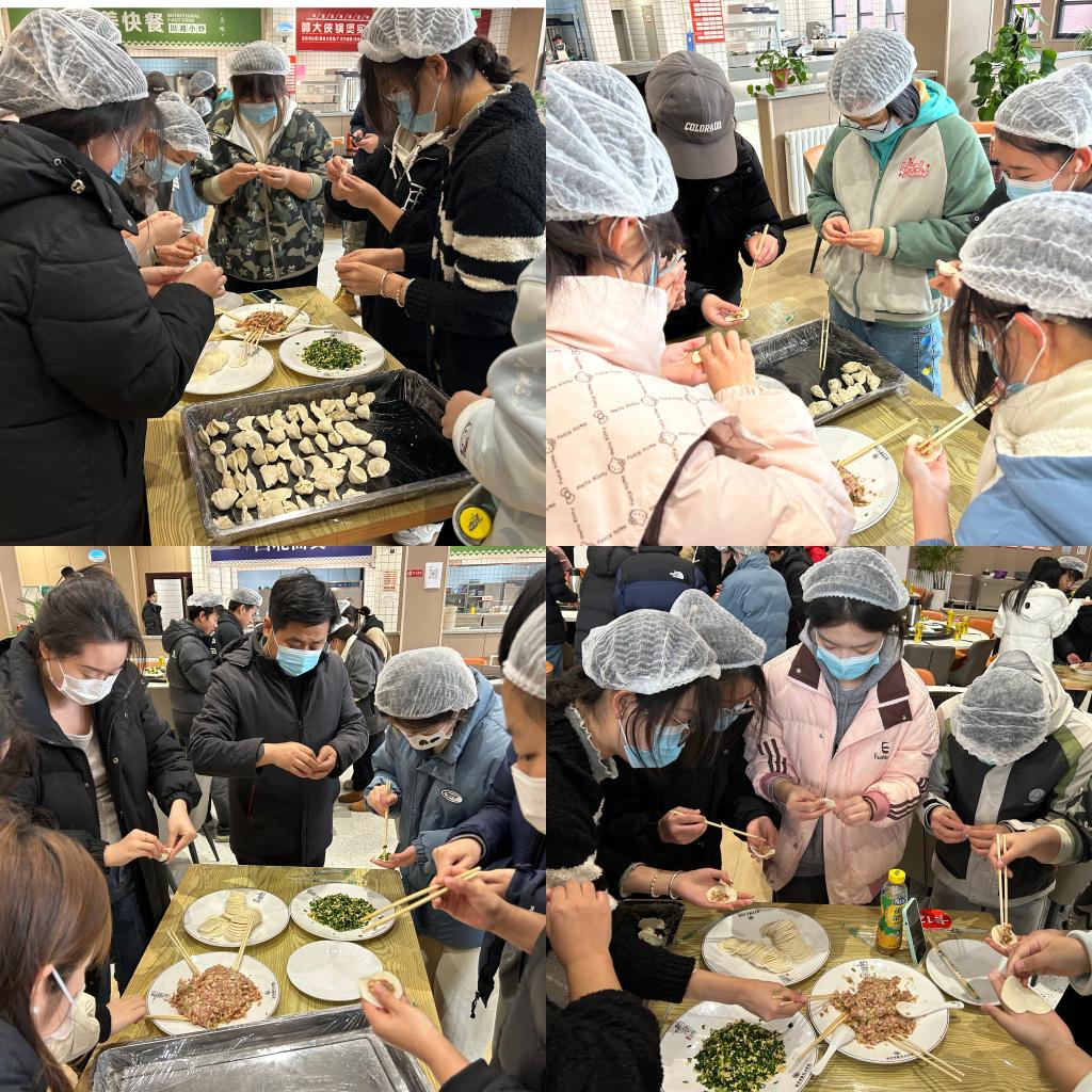 活动伊始,食堂工作人员为大家准备了饺子皮和饺子馅。同学们热情高涨,纷纷展示自己的手艺。一双双巧手熟练地操作着面团,一个个精致的饺子在同学们的巧思妙想中诞生。大家一边包饺子,一边交流经验,欢声笑语此起彼伏。