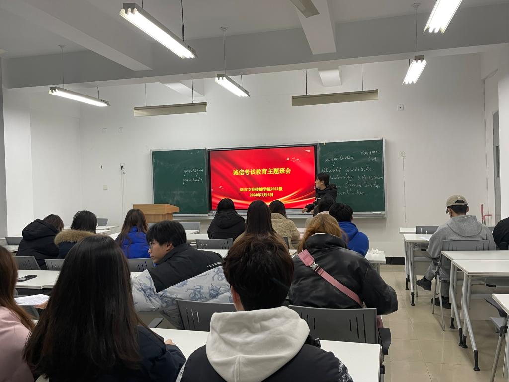 为培养学生的诚信意识,端正学生对学习和考试的态度,严肃考风考纪,切实做到“考之以诚,答之以信”,提高我院同学们对考试作弊严重性的认识,以及切实增强学生的安全防范意识和避险能力,保障学生安全。我院全体辅导员于1月4日召开了“诚信考试”和“假期安全教育”的主题班会。
