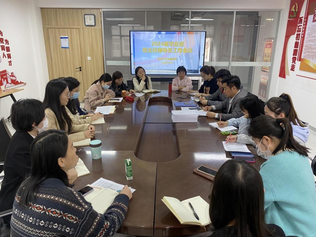 其后,辅导员张兴、侯澄分别就2024届毕业班考研情况、就业现状以及下一阶段帮扶工作安排及难点等进行了汇报。
