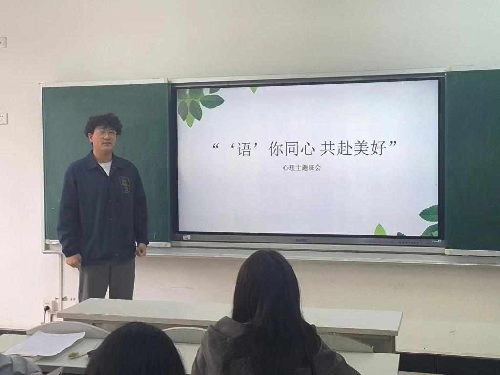 在当代大学生面临的学业压力、就业挑战和人际关系等多方面因素的影响下,心理健康问题日益凸显。为了增强学生的心理素质,提高应对生活和学习压力的能力,语言文化传播学院组织学院各班召开“‘语’你同心 共赴美好”心理主题班会。