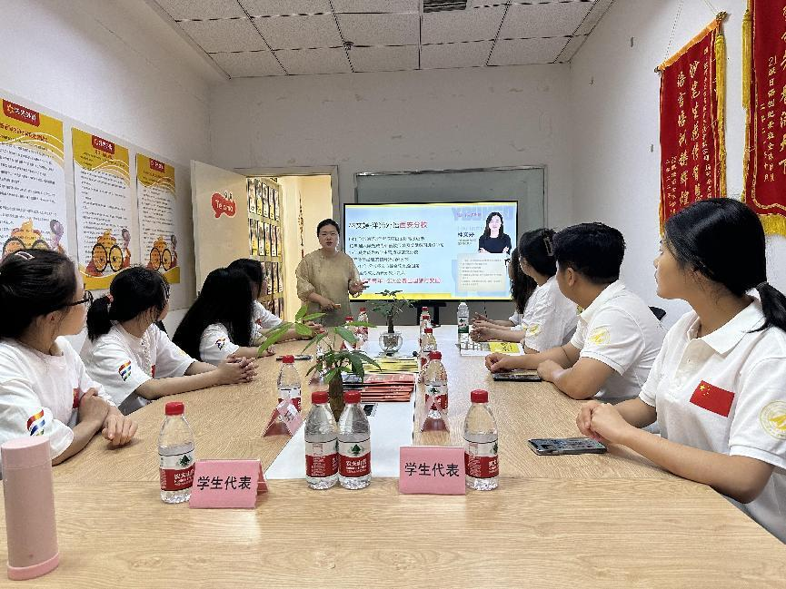 林文婷校长带领我院师生参观了公司,展示了公司优秀的教师和学生。随后,双方在会议室进行了座谈会。座谈会上,林文婷向我院师生们详细介绍了公司的企业文化、发展规模和课程培训项目等内容,同时也针对公司的工作内容、岗位需求做出了详细说明,真诚欢迎同学们来洋光教育工作实习。随后,杨峰介绍了学校发展历程,从办学定位、学科专业、师资队伍、教学科研等方面对语言文化传播学院情况进行了介绍。