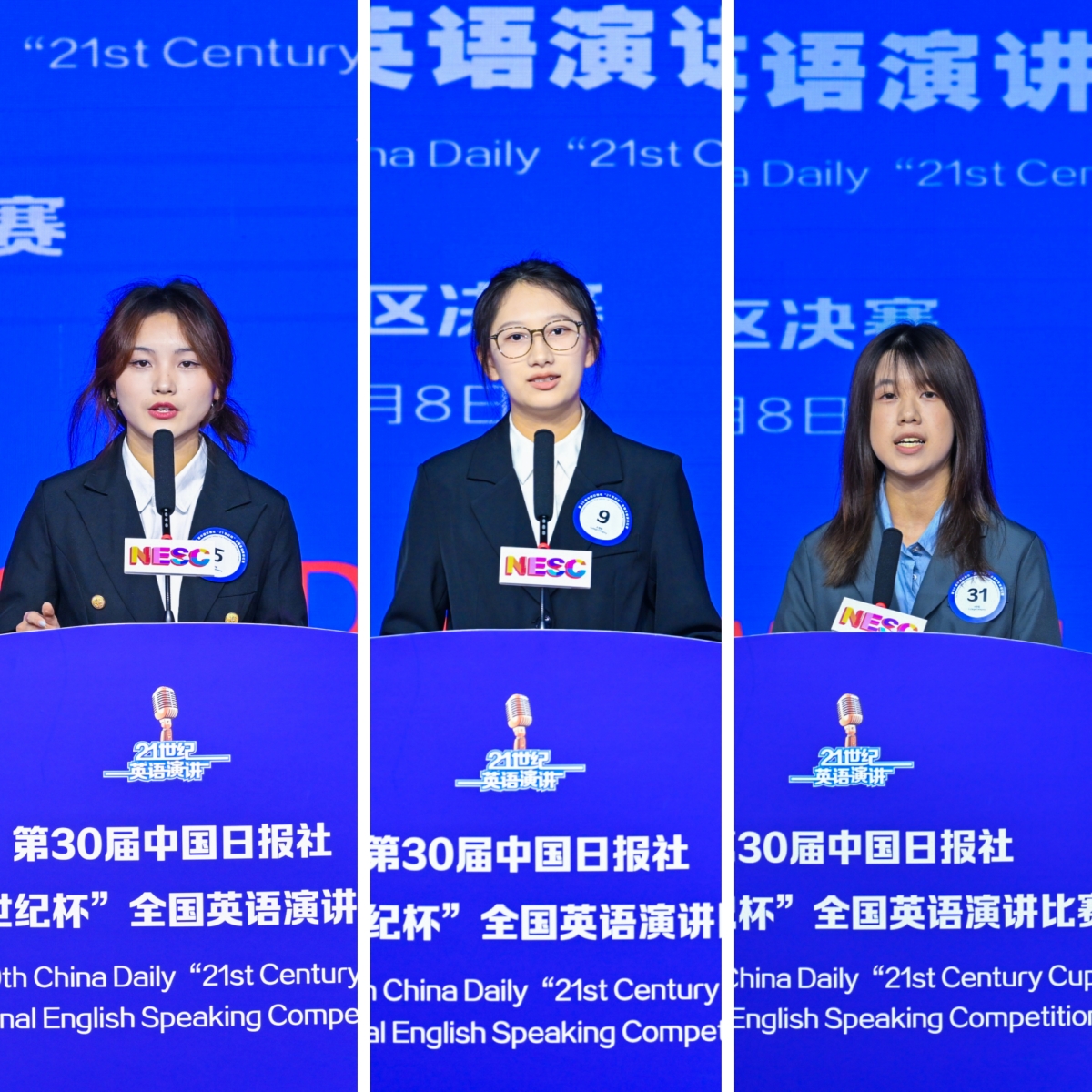 “21世纪杯”全国大学生英语演讲比赛由中国日报社创办于1996年,2023年被纳入《全国普通高校大学生竞赛分析报告》的竞赛目录,是我国官方认可的全国性赛事之一,也是国际公众演讲比赛(IPSC)中国区唯一选拔平台。30年来,该赛事获奖选手中涌现出了李克强总理的口译员孙宁、央视英文频道知名主持人刘欣等大批国家外语人才。本届大赛启动以来,在有关领导和单位支持下,开元语言文化与传播学院英语演讲教学团队及其指导的MAPS明德英语公众演说协会精心筹办校园选拔赛。全校各年级、各专业近100余名选手报名参赛,胡烨、王蕊和刘思羽3名同学历经校园初赛、复赛的层层选拔,从中脱颖而出,为学校争得了荣誉。