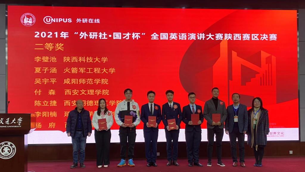 左起第四,开元英语专业2020级学生陈立捷,获陕西省决赛二等奖