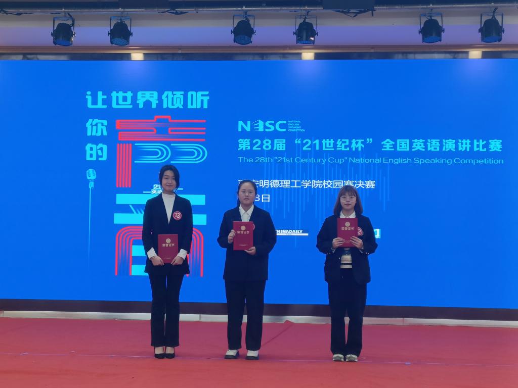 评委老师们本着公平公正的原则,将演讲内容、语言质量、综合印象作为评判的三个标准。本次大赛评共评选出一等奖两名,二等奖三名,三等奖七名,最终获奖情况如下: