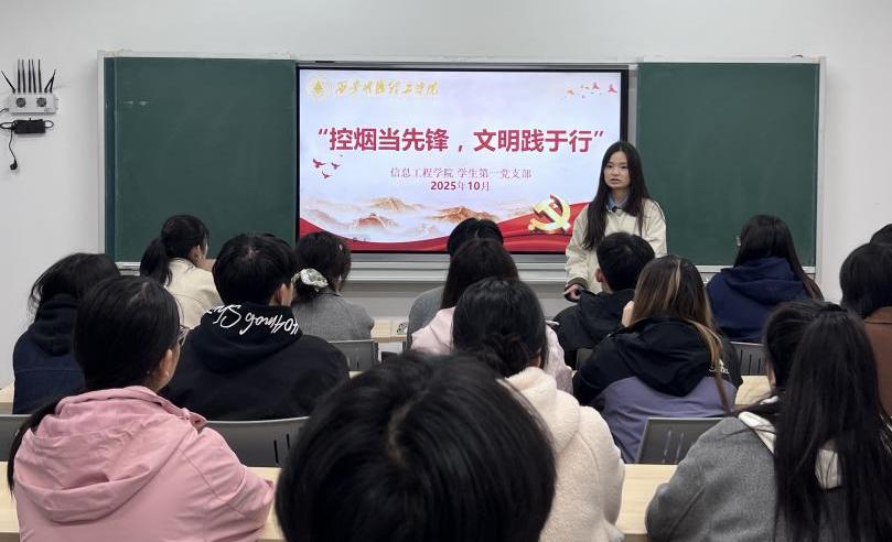 为响应校园无烟环境建设号召,发挥学生党员在文明校园创建中的先锋模范作用,引导支部成员树立健康生活理念、践行文明行为规范。10月19日,信息工程学院学生第一党支部在培德楼106教室开展“控烟当先锋 文明践于行”主题党日活动。此次活动由支部书记张蓉主持,全体党员、预备党员及部分入党积极分子共同参与。