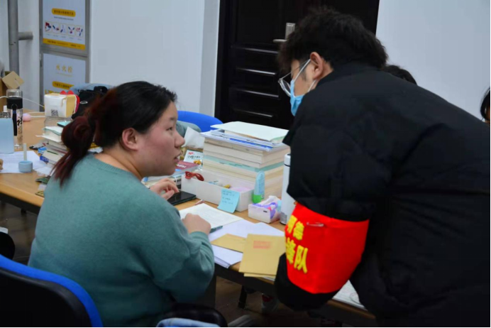 我们的"党员先锋队"志愿者来到终南书院亲手将爱心信封送到了正在复习收官阶段考研学子的手上,这一封封信给考研学子带来了冬日里的温暖,提醒考研的学子在紧张忙碌的复习过程中要切记做好防疫措施,照顾好自己。教室里的同学们接到信封纷纷表示感谢,温暖的笑容了感染着我们党支部的每一位同志。