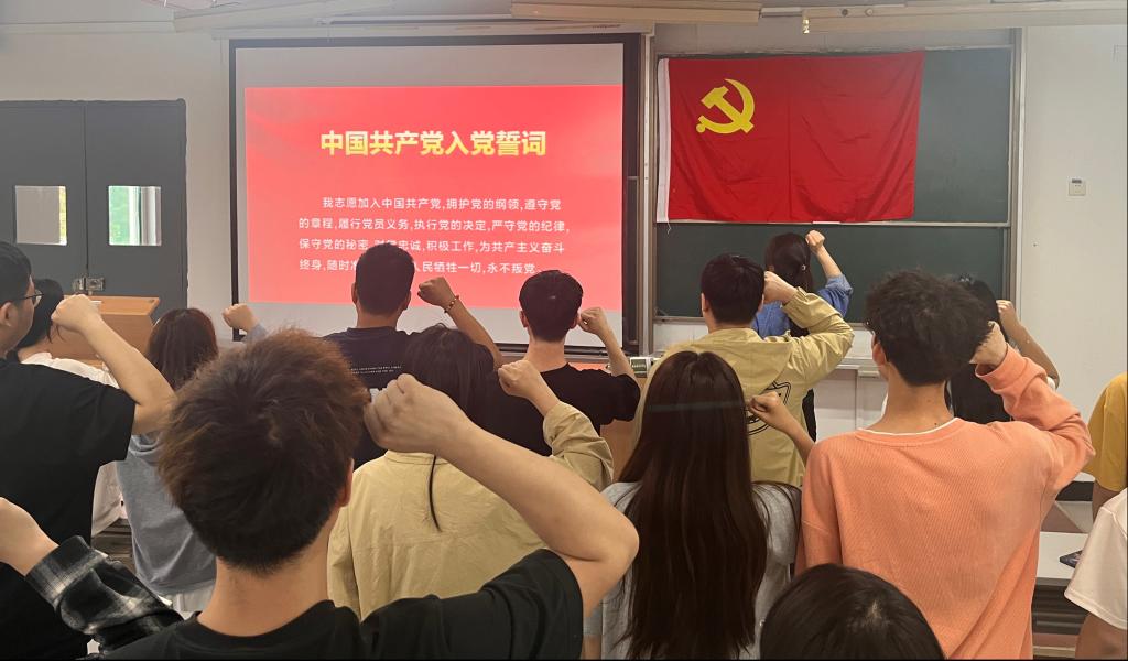 首先,支部书记带领全体党员重温入党誓词,面向党旗庄重宣誓。强调党员必须坚定理想信念,不忘初心,牢记使命,以实际行动践行对党的庄严承诺。