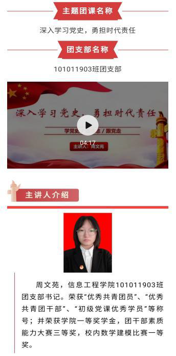 在思想引领方面,坚持把深化“理想信念教育”作为基层共青团育人的政治责任。我院团工委自创建以来,制定了《信息工程学院团干部学习制度》,坚持党建带团建的原则,将自学与集中学习相结合、专题辅导与参观学习相结合、线上学习与线下学习相结合,把理论学习与实践工作紧密结合起来。