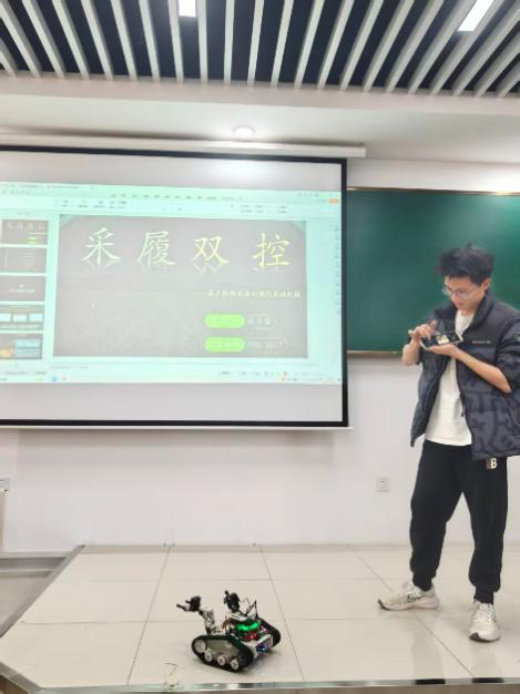 比赛现场,各团队精彩呈现了多样化的作品。从基于履带式结构的“采履双控”现代农业采摘机械,到融合ESP32主控的火灾应急小车;从实现多光谱数据采集的无人机系统,到基于TensorFlow的热成像物体识别方案,作品覆盖硬件设计、算法优化、系统集成等多个维度。在展示过程中,选手们结合PPT详细阐述作品的设计理念、技术路线及应用场景,同时通过实物演示让答辩老师更直观地了解作品功能,如“采履双控”团队展示了作品在复杂地形下的稳定性和采摘效率,无人机组则现场操作六旋翼飞行器,结合投影屏幕实时呈现多光谱数据处理流程,引发现场观众的热烈讨论。