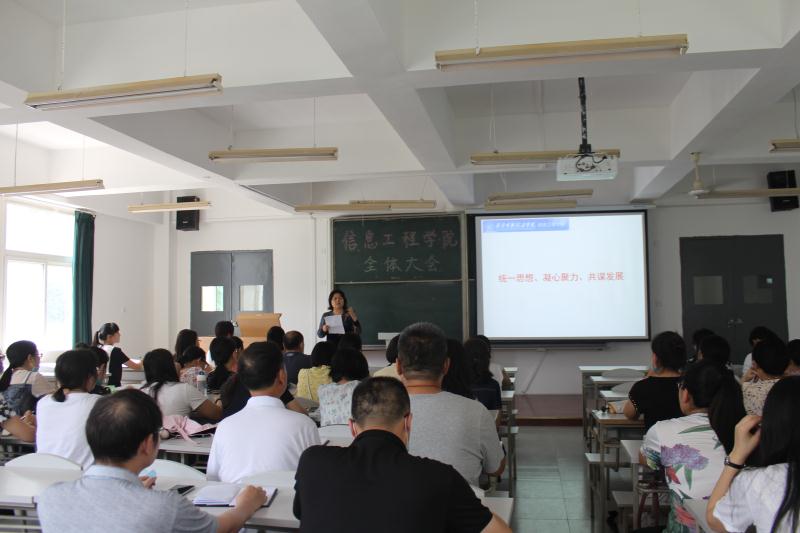 2020年7月6日下午,信息工程学院在培德楼212举行了全体教职工大会。信息工程学院院长王芳丽老师、副院长魏瑾老师、党总支书记蔡文静老师参加会议并讲话,会议由学院办公室主任尹莹老师主持。