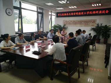 7月16日上午,我院张渤院长一行7人前往西安市大数据管理局调研交流。西安市大数据局局长刘军出席接待。调研交流会在西安市大数据管理局会议室召开。明德学院党委副书记董昊、院长助理兼学院办公室主任支晓、信息工程学院教师詹金珍、令前华、张健和张伟岗以及西安市大数据局办公室主任傅强、数据产业处处长曹康、新经济发展处处长吴亚庆、西安市12345热线服务中心负责人王斌也出席了会议。