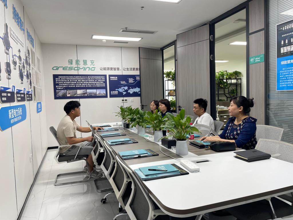 在孟总经理的陪同下,德语专业教师团队参观该办事处的各个部门,实地了解企业的技术研发流程、生产运营模式以及涉外业务开展情况。国际化的业务布局,让教师们对企业的人才需求有了更直观、深刻的认识。座谈会上,双方就人才培养、实习就业等议题展开深入探讨。孟经理重点介绍了企业涉外工作的开展情况及毕业生招聘标准,他指出,当前外语专业毕业生在就业市场仍具备一定竞争优势,但企业更看重人才的实践能力与跨学科素养。他建议高校加强学生实践实习环节,着力提升其德语实际运用能力,培养出能快速适应企业工作节奏的应用型人才,为德语专业的人才培养方向提供了宝贵的行业视角。陈婧教授代表学院对绿能慧充的热情接待表示衷心感谢,并详细介绍了德语专业的办学定位、办学理念及近年来的建设成果。她强调,学院正积极响应“新文科”建设号召,推动专业转型升级,致力于构建具有鲜明能源特色、服务地方经济发展的复合型人才培养体系。此次与绿能慧充的交流,为整合校企资源、共建教学与实践并重的育人平台创造了良好契机。