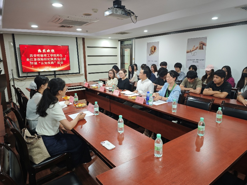 为深化产教融合,提升学生实践能力和专业素养,经济与管理学院金融学专业学生在教师孙敏、鲁惠榕、杨澜、王乐、武秉蓉的带领下,于7月1日前往江泰保险经纪股份有限公司陕西分公司开展认知实习,实现理论教学与实践教学相融合。