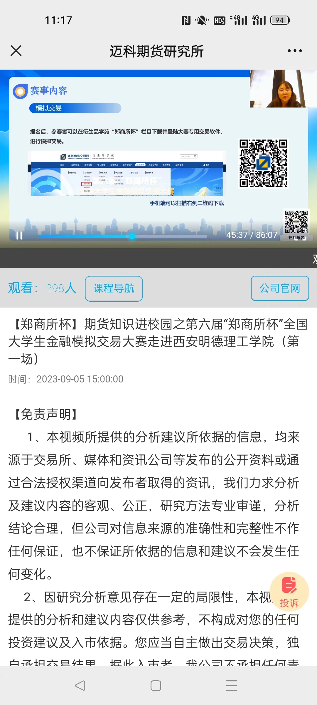 为进一步培养学生对金融市场的分析能力和实践能力、提高学生风险控制意识,9月5日下午,经济与管理学院联合迈科期货股份有限公司举办“期货知识进校园”暨第六届“郑商所杯”全国大学生金融模拟交易大赛线上宣讲活动,全院师生共计200余人参加了本次活动。