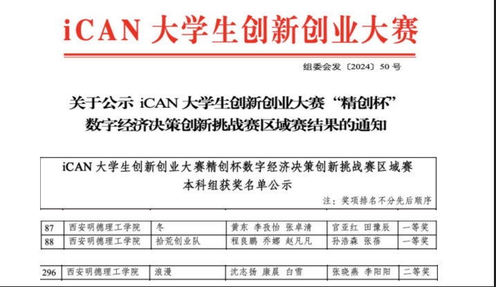 iCAN大学生创新创业大赛获批《教育部、财政部关于批准2010年度大学生竞赛资助项目的通知》大学生竞赛资助项目,入选《全国普通高校大学生竞赛分析报告》竞赛目录,同时也是学校认定的A类竞赛项目。
