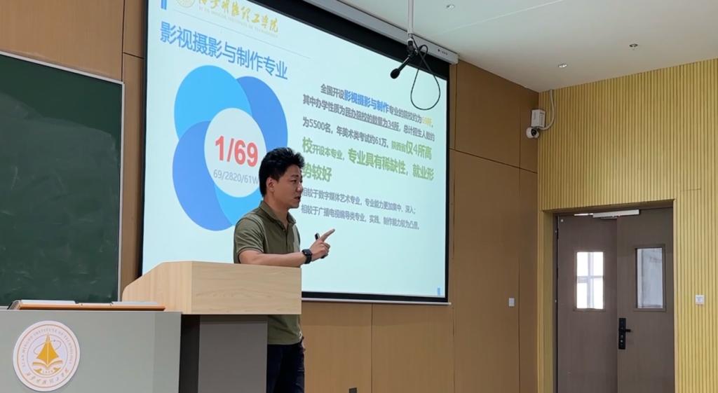 2024 年 10 月 16 日中午,艺术与设计学院影视摄影与制作专业教师与大一学生齐聚一堂,开启了一场关于专业的深度探索之旅,专业负责人朱宇老师进行了专业介绍,专业李东刚、杨宇堃、牛童、刘强、雷昕宇老师共同参与。