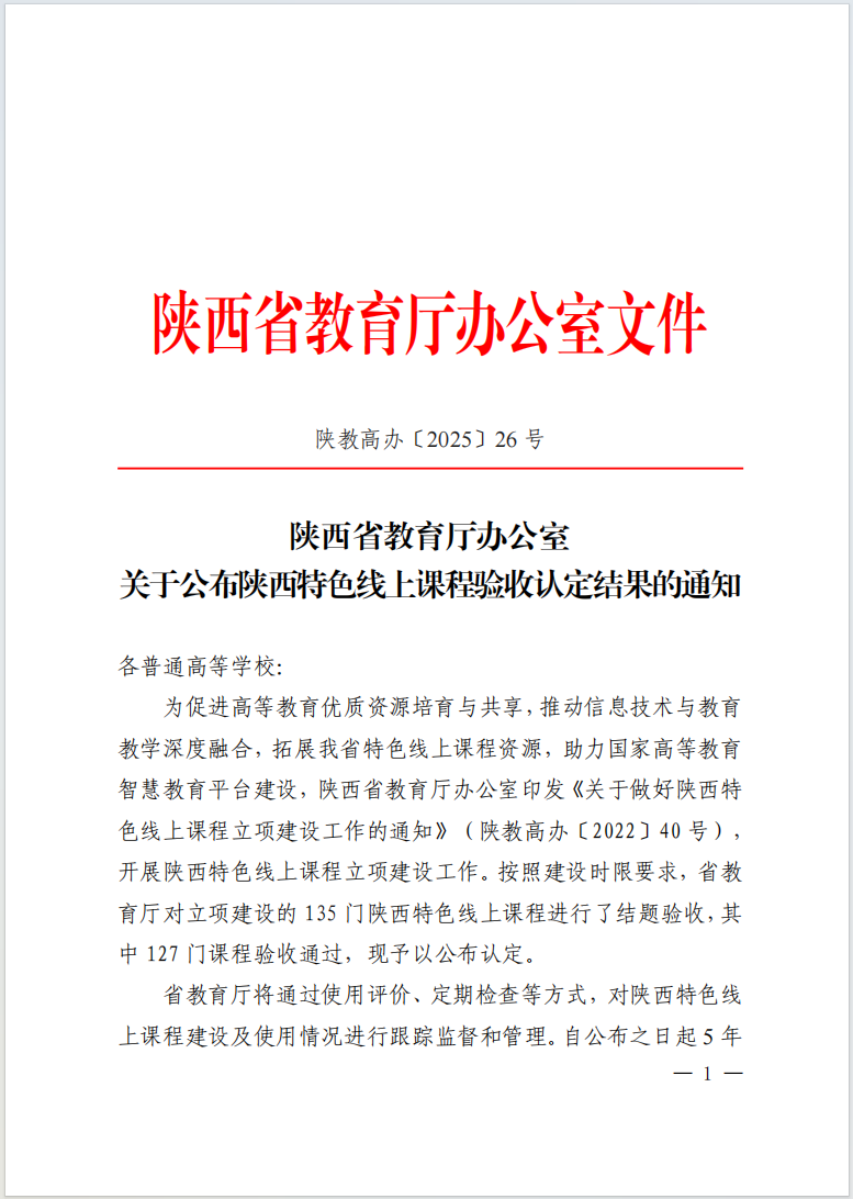 以上两门课程于2023年成功获得“陕西特色线上课程”省级立项。经过两年的精心建设与教学实践,课程团队在教学内容、教学模式、资源建设等方面取得了显著成果,最终顺利通过省教育厅组织的专家评审。