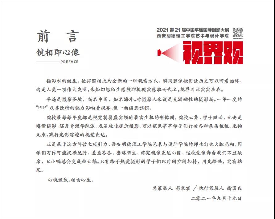 9月19日第21届平遥国际摄影艺术节在山西平遥举办艺术与设计学院学生系列摄影作品《视界观》首次亮相。