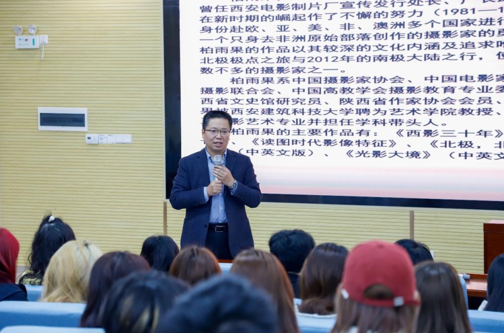 随后,柏雨果教授带着现场师生观看了自己拍摄的《活着》纪录片并就几张别具特色的摄影作品介绍自己拍摄的心路历程及对生命力量的感动。他询问了现场学生对专业的理解和对未来工作的考虑,一一耐心解答学生在学习、实践和生活中所遇到的困惑和问题,使学生们醍醐灌顶、大有所获。
