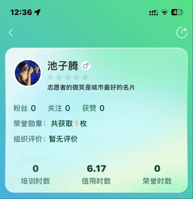 池子腾等同学在“志愿汇”上的志愿时长记录