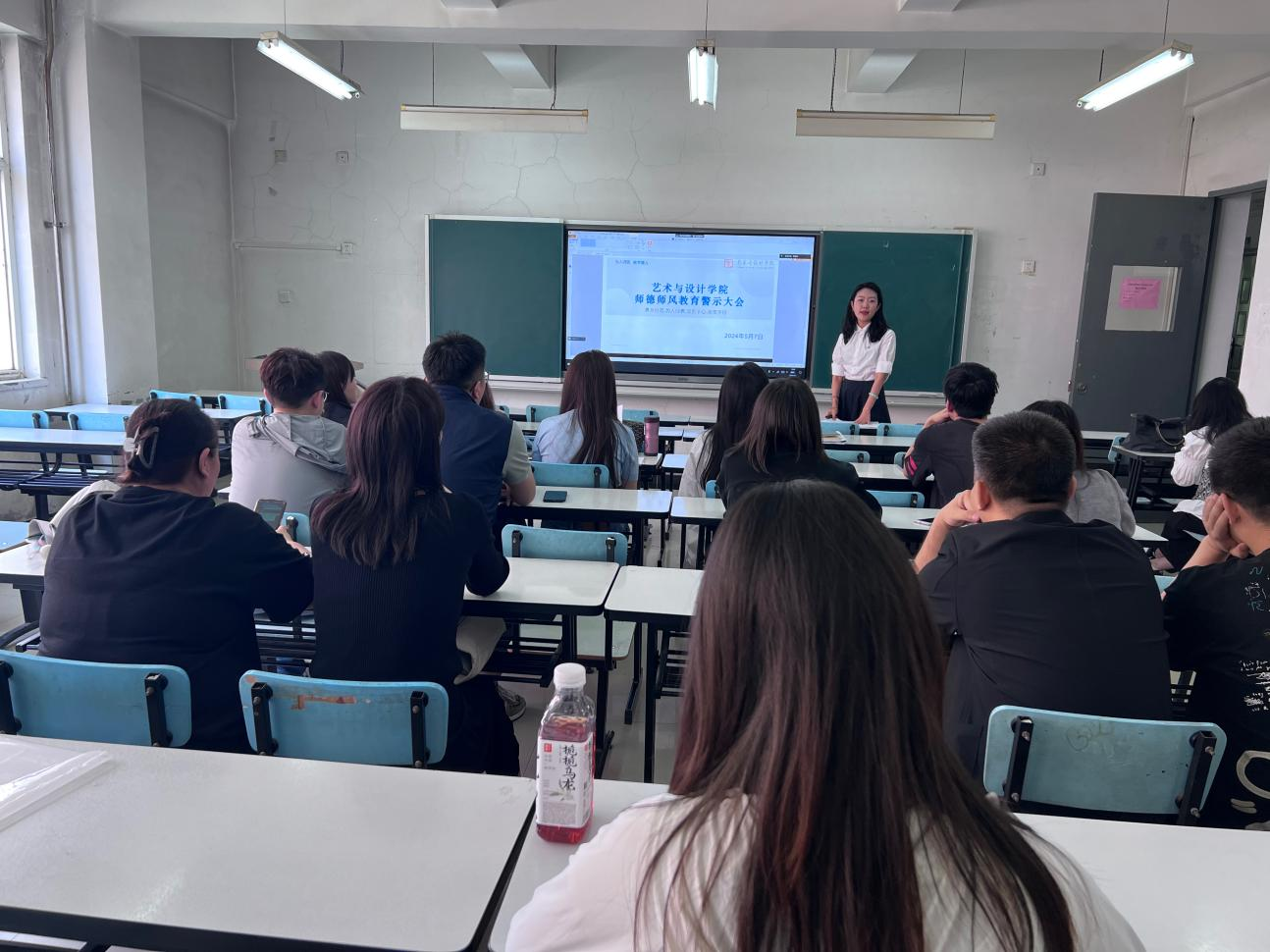 为深入落实师德师风第一标准,切实增强教师的责任意识、法治意识、纪律意识、安全意识,营造良好的师德师风氛围,5月7日中午,艺术与设计学院在南、北校区采取线上线下结合的形式召开师德师风教育警示大会。全院教职工参加会议,会议由学院党委书记兼行政副院长雷宇主持。