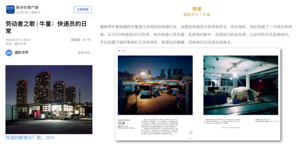 影视摄影与制作专业教师⽜童摄影作品《快递员的⽇常》在《中国摄影》2024年5期(C刊)刊发,五⼀劳动节之际,新华社五⼀专题报道“劳动者之歌”板块予以载。