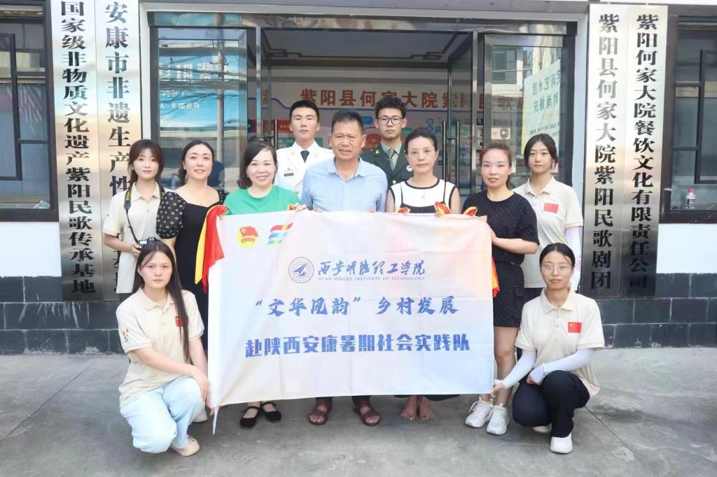 经过前期与当地生产力中心的沟通,,当天下午在当地生产力中心主任的热心讲解下,了解了许多当地的具体情况。深入的探讨了这次活动的具体事宜。在主任的带领下前往紫阳县何家大院暨紫阳民族歌剧院参观学习,在剧团成员的亲切介绍下,我们了解了紫阳县歌剧团的历史以及非遗民歌文化传承的不易与艰辛,实践队所有成员在剧团成员热情洋溢的舞蹈表演中感受到了紫阳人民的热情好客,亲切备至。