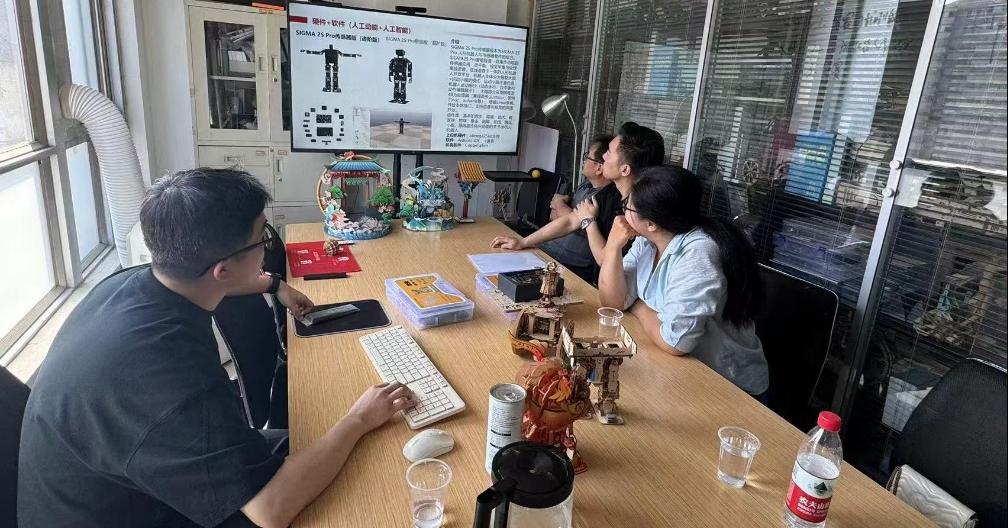 在与缔造者机器人的座谈中,企业代表详细介绍了公司的发展历程、技术创新、产品特色以及当前在元木智拼与机器人设计领域的最新需求与挑战。随后,学院代表详尽阐述了学校的人才培养理念与培养模式,并进行了相关课程建设的交流,特别是针对文创设计、智能产品设计等领域的课程设置,分享了学院如何通过丰富的实践活动增强学生的实践能力和创新思维。双方基于当前的校企合作模式进行了深入沟通,并对于下一步合作模式达成了共识。