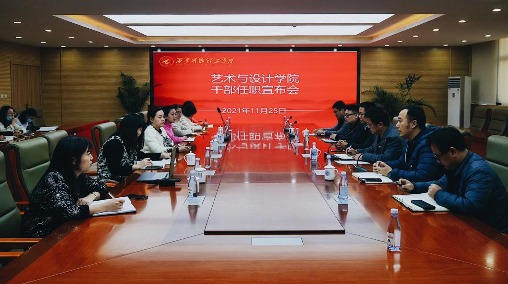 11月25日下午,艺术与设计学院干部任职会在学校第一会议室举行,学校副校长王斌宁、人力资源部副部长康抗、艺术与设计学院领导班子、专业负责人、办公室及辅导员、教师代表参加了会议。会议由王斌宁副校长主持。