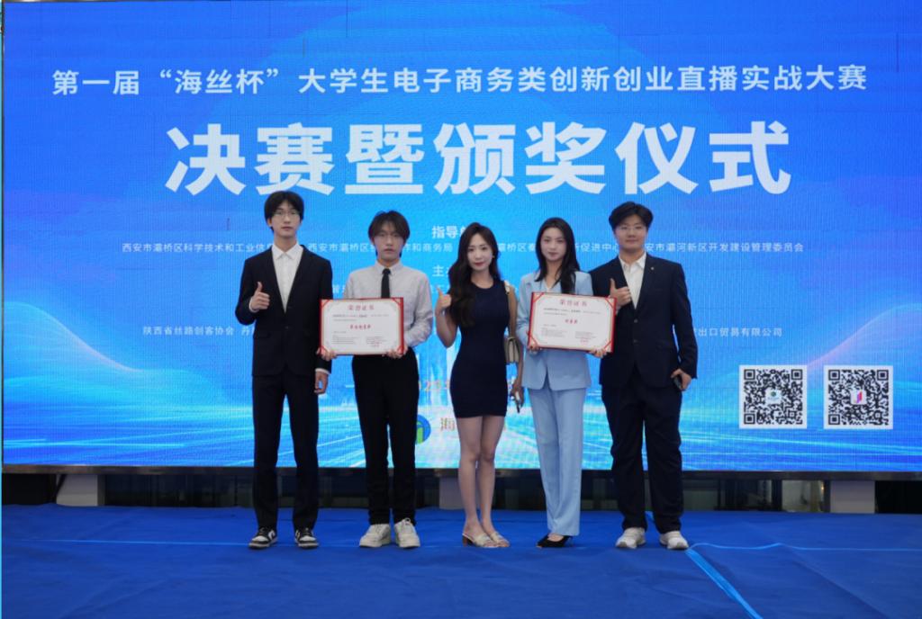 2025年5月24日,为深化产教融合,推动区域经济数字化转型,由西安市灞桥区科学技术和工业信息化局、投资合作和商务局指导,西安佳汇商业运营管理有限公司与陕西海丝创业孵化器有限公司联合主办的首届"海丝杯"大学生电子商务类创新创业直播实战大赛决赛暨颁奖仪式,在灞桥区海丝电商产业园圆满落幕。以"政校企协同育人才,数智赋能新电商"为主题,本次赛事搭建起政府引导、企业参与、高校协同的创新平台,为电商产业高质量发展注入新动能。