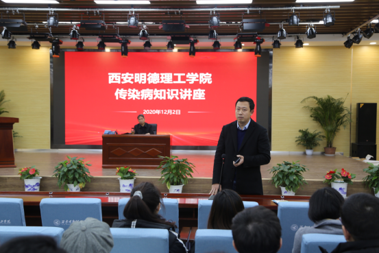 目前已经进入冬季,天气日渐寒冷,温差较大,是一些传染病的高发季节。最常见的是呼吸道传染病和肠道传染病。为了提高师生对秋冬季传染病的认识,切实加强防治工作,2020年12月2日下午后勤安保部邀请学院主任医师、卫生所主任党福全给全院的辅导员进行了出血热等传染病知识讲座。学院董昊副书记,二级学院蔡文静、陈雪彬书记参加了讲座,后勤安保部综合科负责人谢永春主持会议。