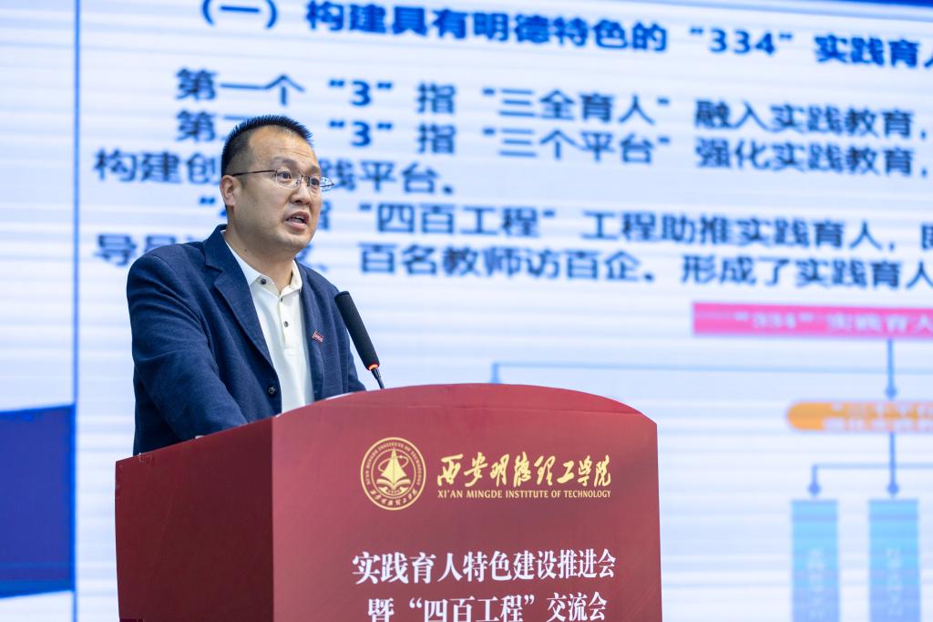 教务处副处长任华,就学校实践育人特色工作建设情况作了题为“构建实践育人工作体系深化实践教学改革创新”的交流发言,对实践育人工作的开展情况及取得成效进行了汇报。近年来,学校构建了具有明德特色的“334”实践育人工作体系,重构了综合化创新性“2348”实践教学体系,教学管理制度和质量保障体系不断完善,实践教学条件得到明显改善,协同育人项目及校外实习基地逐年增加,创新创业发展能力不断增强,学科竞赛获奖数量逐年增多,社会实践育人效果显著,深受社会各界好评。
