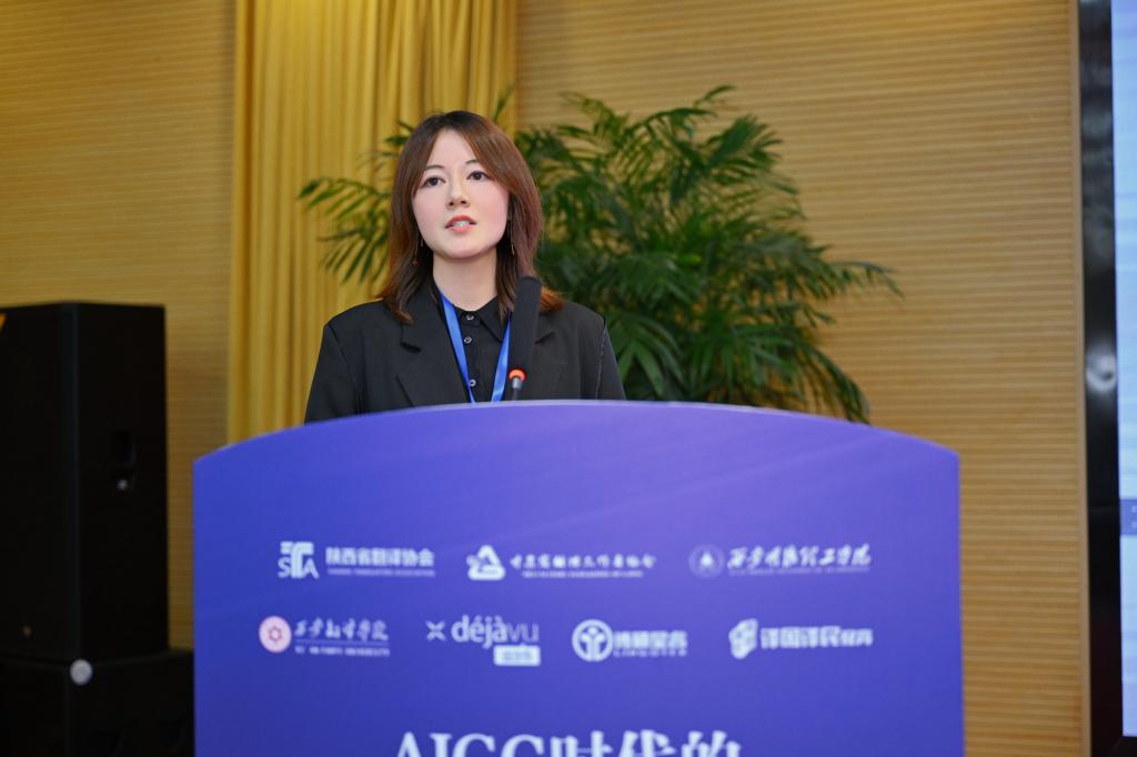 宁静在题为“AIGC时代翻译技术教学模式实践”,介绍了在AIGC技术影响下,翻译技术教学模式的变化,以及如何利用这些技术提高教学质量和学生的学习体验。她还分享了一些成功的教学案例,如通过在线平台进行实时翻译练习和反馈,以及利用AIGC技术进行个性化学习路径的设计。