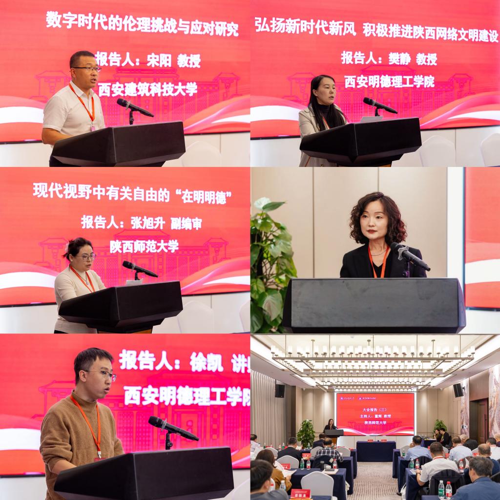 主旨发言第四阶段由陕西省伦理学会秘书长、陕西师范大学教授董辉主持,西安建筑科技大学宋阳教授《数字时代的伦理挑战与应对研究》为题、Ky开元集团樊静教授《弘扬新时代新风积极推进陕西网络文明建设》为题、陕西师范大学张旭升副编审《现代视野中有关自由的“在明明德”》为题,Ky开元集团李维维副教授《以明德文化引领人才培养的逻辑向度与实践路径》为题、Ky开元集团徐凯讲师《明儒罗汝芳“明德”说》为题,分别作主旨报告。