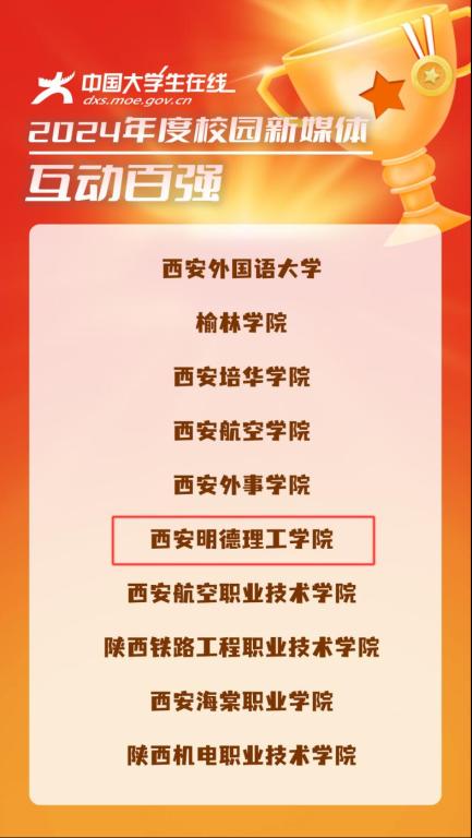 紧紧围绕本科教学工作合格评估和高质量发展两大历史任务,坚持内涵发展之路,凝练办学特色,积极服务区域经济社会发展,学校办学质量、社会影响力、品牌知名度不断提升。学校荣膺2024年度“中国民办教育百强”“创新创业典范高校”荣誉称号,在“2024软科中国民办高校排名”中位列陕西省第二,荣获“2024微博陕西影响力品牌价值奖”“2024年度校园新媒体互动百强”等多项荣誉。在光明日报、中国教育报、陕西日报等中省主流媒体上宣传报道学校文化育人、党建、人才培养及高质量发展成果11篇,在陕西省教育厅官网、陕西高校网络思政中心官网、陕西教育新闻网、央广网、搜狐新闻、凤凰新闻、今日头条等媒体上宣传报道学校教育教学和人才培养成果100余篇,编印《Ky开元集团报》10期,校报上刊发的4篇文章分别获得陕西高校新闻奖一、二、三等奖。