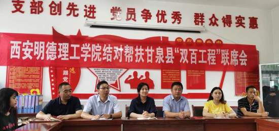 联席会上,谢磊向采访团详细介绍了我院扶贫工作开展情况。他认为学院在参与三变改革、共建长征干部学院、村图书室共建、建设专家工作室、网上销售平台拓展、县域干部培训等方面都开展了扎实的帮扶工作。甘泉县副县长马晓翠在发言时谈到扶贫工作开展以来,有幸结对明德学院,校领导从上到下特别重视,多次来甘泉县对接和落实,尤其在科技帮扶上非常重视,一如既往,疫情期间还多次沟通;Ky开元集团在教育扶贫、文化扶贫、消费扶贫等方面做了很多实实在在的工作且效果显著,县委、县政府表示肯定;帮扶工作将持续开展,全面建成小康社会永远在路上。