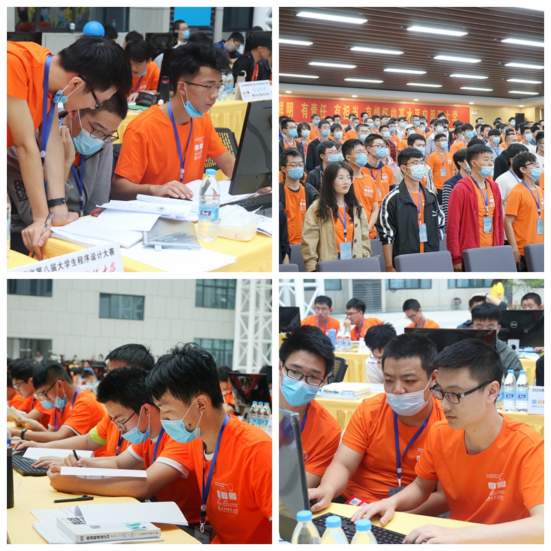 9月26日上午11:00,比赛在明心楼中厅正式开始。比赛规定每支参赛队由3名在校大学生组成,每队使用1台计算机解决复杂的编程问题。在比赛过程中,现场大屏幕实时公布所有队伍的进展情况,同时通过气球的颜色和个数,可以了解到身边其他参赛队伍的答题情况,这也考验着参赛选手的现场抗压能力。