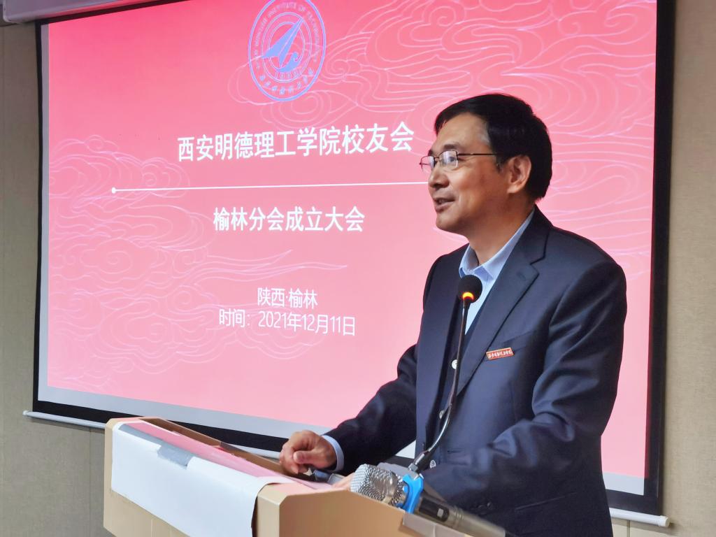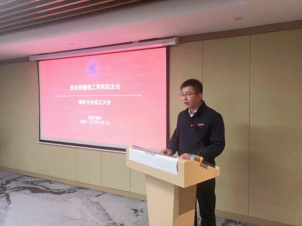 榆林分会会长李廷代表首届理事会发言,他感谢母校对榆林分会的支持与帮助,为榆林校友提供了沟通联络、情感交流的平台;他与校友们共同回忆明德时期的美好时光:“中心广场多彩的学生活动、小吃城里可口的饭菜、图书馆上空闪烁的星空照亮着勤奋学习的明德学子……”。李廷表示,作为榆林分会的会长,今后一定在母校的关心下,在榆林地区广大校友的支持下,竭尽全力建设好榆林分会这个大家庭。