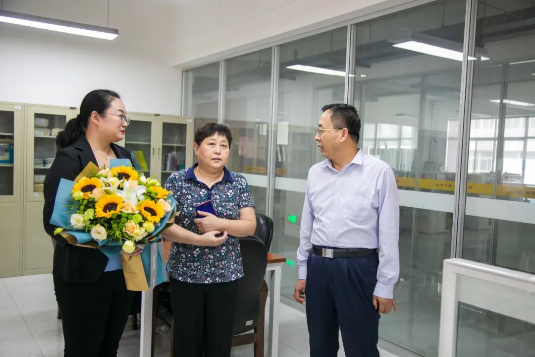 当天下午,副校长庾鲜海、刘星代表学校党政班子看望了陕西省师德标兵刘勇教授、陕西高校青年创新团队负责人赵盼博士,为他们送上鲜花和节日的祝福,详细了解他们的教学科研、学习生活等情况,对他们取得的成绩表示祝贺和肯定。同时认真倾听了老师们对学校各项工作的意见建议,并与大家交流探讨。老师们表示感谢学校的关心,要立足本职,努力工作,为学校转型发展做出新的更大贡献。