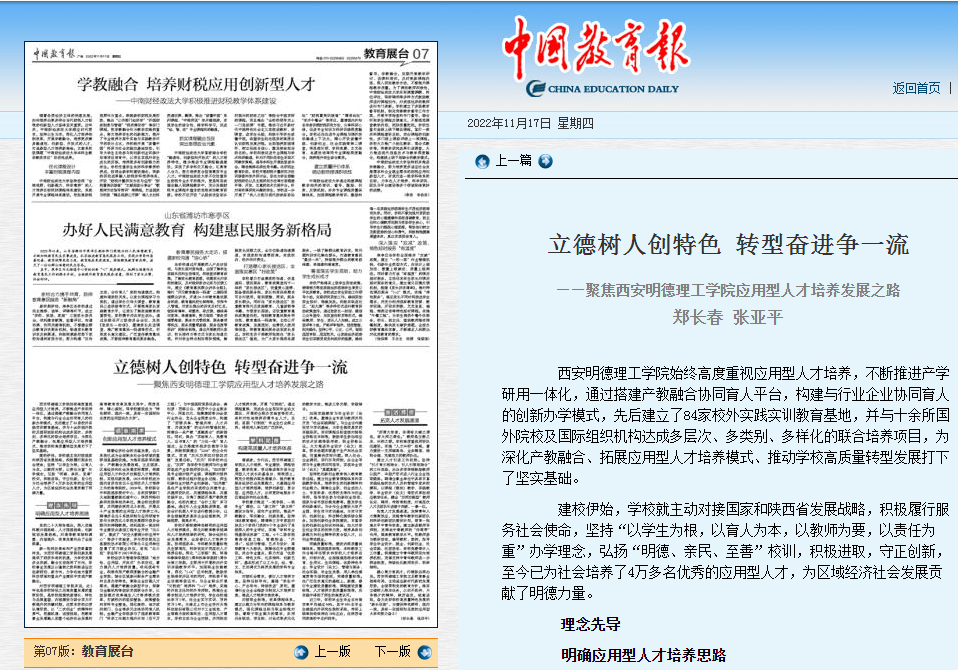 多年来,开元一直非常重视应用型人才的培养发展,并进行了卓有成效的探索和实践,受到社会各界的关注和肯定。11月17日,《中国教育报》以半个版的篇幅,刊发《立德树人创特色转型奋进争一流》的专题文章。