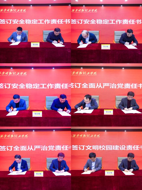 会上,阎东明、杨健君与相关单位负责人代表分别签订了2023年全面从严治党责任书、安全稳定目标责任书、文明校园建设责任书。