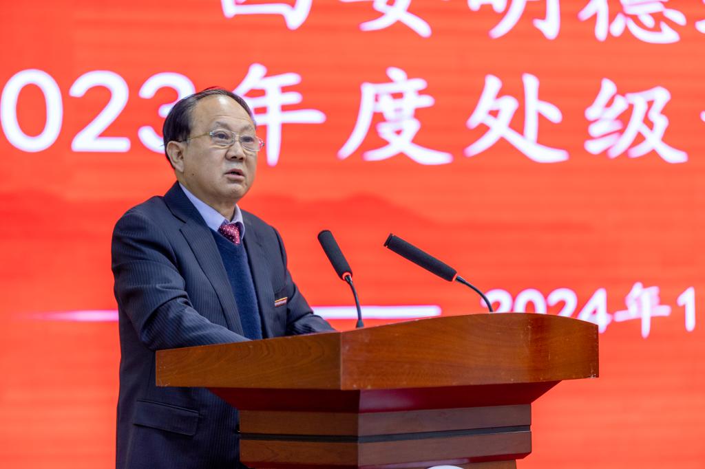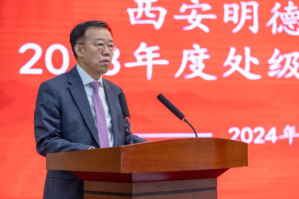校长王志刚教授根据董事长的指示作重要讲话,他首先代表学校对全体处级干部的工作表示肯定和感谢。他表示,本次述职既是全面展示处级干部年度工作思路、举措、成效和特色成果的汇报会,也是各单位工作成果的分享会,还是总结成绩、查找问题、明确方向再出发的动员会。他强调,处级干部是是学校运行管理的中坚力量,学校高质量发展需要一支具有较高政治站位、胸怀国之大者的干部队伍,需要一支具有较强学习能力能够较好研究理解掌握高等教育规律和应用型大学建设、应用型人才培养规律、对评估指标内涵深刻理解的干部队伍,需要一支具有较强执行能力和创新能力的肯担当善作为求真务实的干部队伍,需要一支具有较强的协作配合能力的干部队伍。他要求,全体干部要履行为党育人、为国育才的初心使命,深入推进本科合格评估的评建准备和创建陕西省教育系统文明校园2024年重点工作,认真总结经验、增强战略思维,谋篇布局,敢于攻坚克难,打破壁垒,以强大的工作合力顺利完成2024年攻坚任务。
