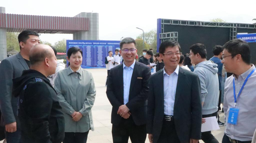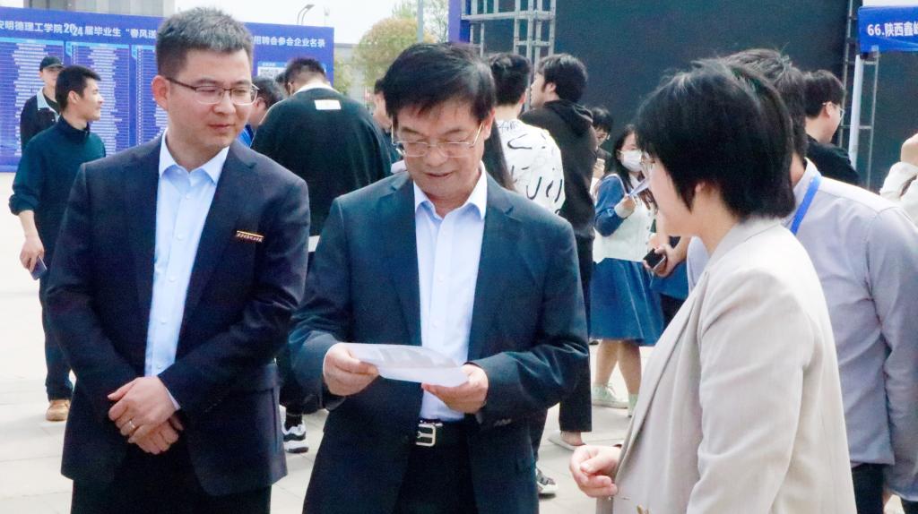 招聘会现场,学校党委书记阎东明,党委副书记、副校长刘星与人社部门领导及企业代表亲切交流。阎东明书记表示,当前正值2024届毕业生春招的黄金期,学校上下正在深入开展毕业生“春季促就业攻坚行动”。本次招聘会的举办旨在进一步聚合政府资源,促进校企供需对接,优化就业指导服务,引导毕业生积极主动求职,推进当前促就业工作重点难点。同时,他希望学校与政府、企业建立政校企“握手”通道,在毕业生校园招聘、实习就业及人才培养等方面加强合作,联合打造综合产、教、学、研基地,实现双方优势互补、共赢发展。